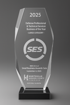 Huntsville, AL, September 5, 2025- We are pleased to announce that the Huntsville/Madison County Chamber of Commerce recognized Science and Engineering Services, LLC (SES) as the Chamber’s Engineering/Defense Business of the Year for 2025 at their Annual Small Business Awards Gala on 4 September.